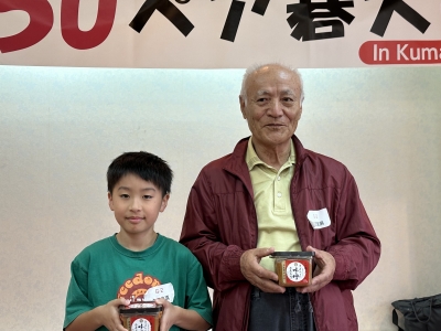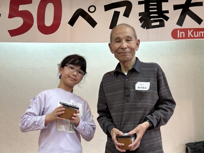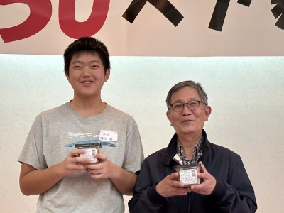| 期 日 : 令和 7年 9月20日(土) 会 場 : 熊本市食品交流会館 午前中4局を戦い、お菓子のグミを2袋選べる参加賞に子ども達は喜んでいました。 全勝者は下記の通りです。 「交流大会」 全勝者 [19路盤の部] 岡崎奈津美(西合志南中2年) 濱田翔太郎(西合志南小3年) 鋤崎成也(あさぎり上小5年) 下東星乃華(出水南小5年) 藏田健太郎(出水南中1年) 平山晴一(出水小3年) 松田美千瑠(東町小5年) 猪山小梅(尾ノ上小4年) 本田 匠(画図小1年) 田上百華(築山小4年) 宇ノ木沙羅(錦西小6年) [13路盤の部] 騎馬志帆梨(託麻東小4年) 騎馬由侑梨(託麻東小2年) 有田樹生(隈庄小2年) |